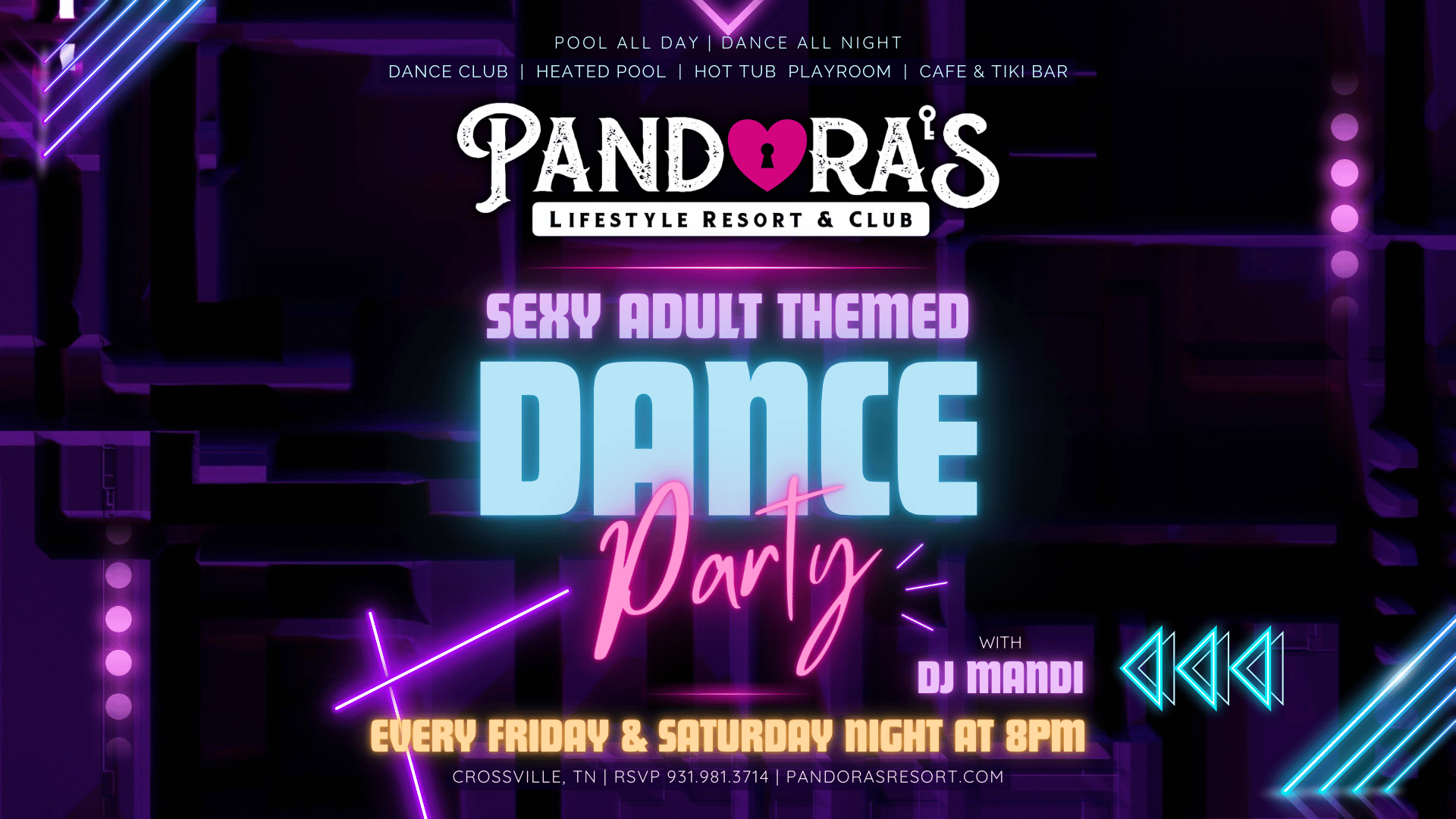 Introducing Pandora's Resort: under new ownership and fully transformed from Pandora's Forest. We're open and excited to showcase our improvements. The Grand Re-Opening on Memorial Day was a hit and resort updates include a the tantalizing new Red Room play space, clubhouse upgrades, renovated cabins, chalets, bathhouse, and outdoor showers. All amenities are open 24/7 for your enjoyment. More enhancements are happening daily. Join us for themed parties every weekend and check out the ongoing improvements at Pandora's Resort. Make a reservation now and experience it firsthand.